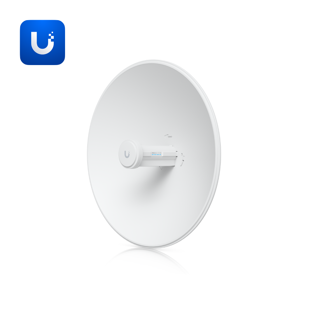 5 GHz PtP bridge with integrated dish and 25 dBi gain delivers:
