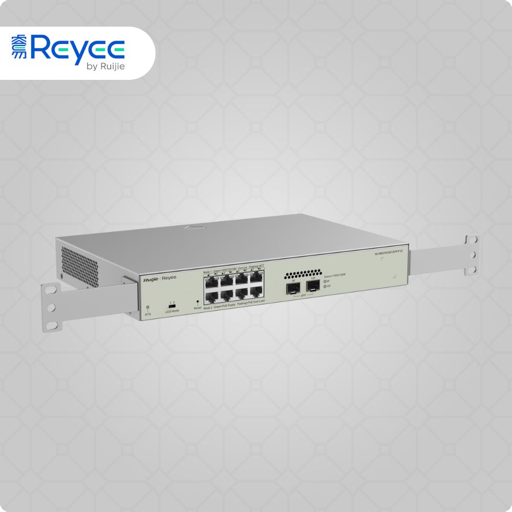 The Ruijie RG-NBS3100-8GT2SFP-P-V2 is a compact 10-port Layer 2 managed PoE switch serving as the intelligent backbone for small business and branch office networks across East Africa. With 8 PoE ports, 2 SFP uplinks, IP camera intelligence, multiple security policies, and lifetime cloud management, the RG-NBS3100-8GT2SFP-P-V2 integrates PoE switching and centralized management — making it ideal for network infrastructure solutions powering access points, cameras, phones and connected devices in space-constrained environments.